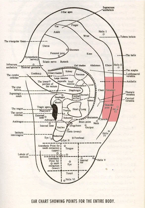 The practice of auriculotherapy views the ear as a microsystem reflecting the entire body. Much like how reflexology maps organs and systems to the feet, auriculotherapy maps them to specific points on the ear. Each of these points corresponds to different organs, glands, emotions, or body systems.